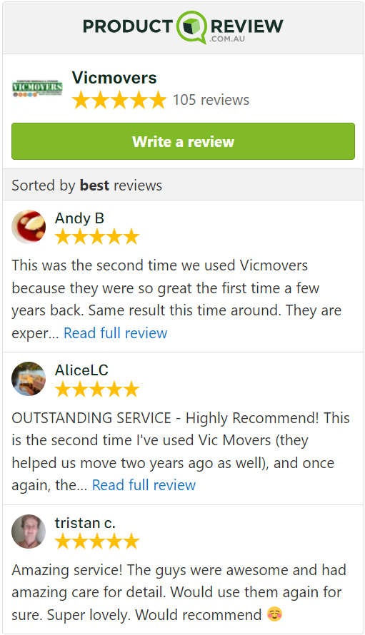 Don’t just take our word for it — see why Melbourne trusts Vicmovers. From Google Reviews and ProductReview to Yellow Pages, TrueLocal, Word of Mouth, and Facebook, our 5-star service leaves a lasting impression wherever customers share their stories.